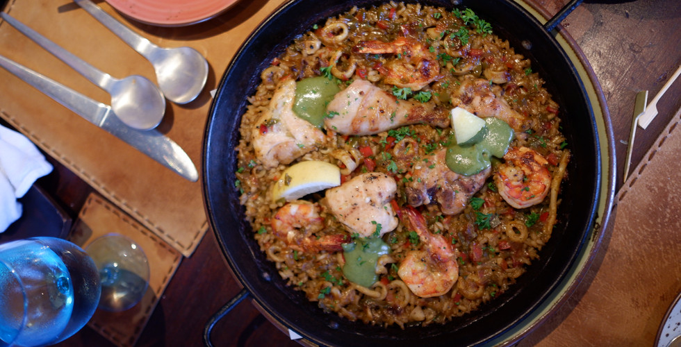And of course Paella, the most famous Spanish dish. Every chef has her own secret recipe layered with complex flavors from shrimp, lobster and other seafood. Saffron and paprika and a tomato sauce base called sofrito. Paella is meant to be eaten family-style. When it's your turn, be sure to scrape up some of that caramelized goodness on the bottom!